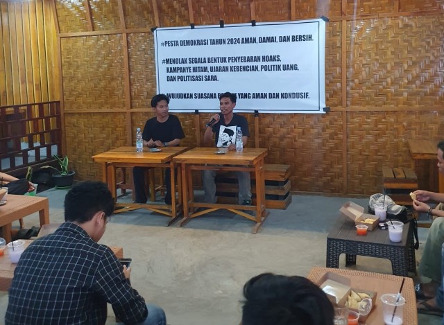 Majene, Fokustimes.com–Aliansi Mahasiswa Majene yang terdiri dari Mahasiswa Universitas Sulawesi Barat (UNSULBAR) dan Sekolah Tinggi Agama Islam Negeri (STAIN) Majene mengadakan sosialisasi Pemilu aman dan Damai di Kedai Tuang Lingkungan Lembang, Selasa (16/1/2024).