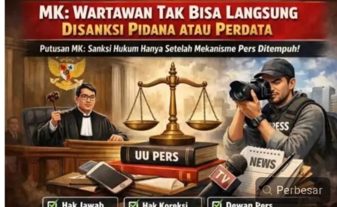 Putusan MK ini dinilai memperkuat kepastian hukum bagi insan pers sekaligus mencegah praktik kriminalisasi terhadap wartawan yang selama ini kerap terjadi akibat sengketa pemberitaan.