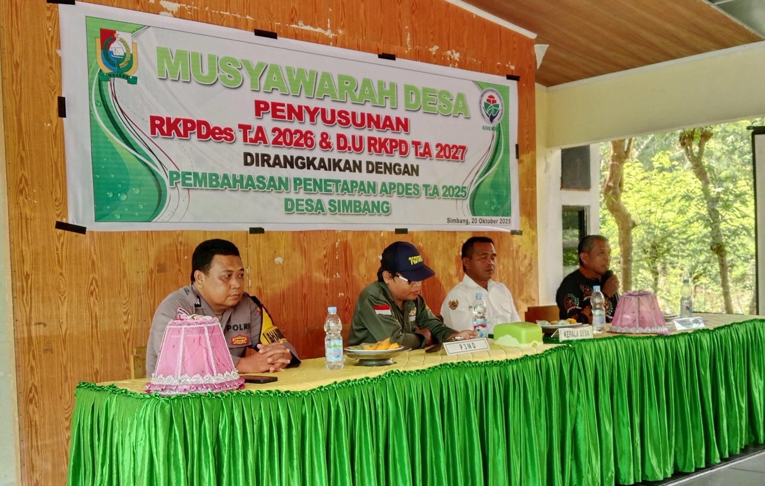 ” Selain itu, Pelaksanaan Musyawarah Desa (MUSDes) dalam Rangka Penyusunan Rencana Kerja Pemerintah Desa (RKPDes) Tahun 2026 dan Daftar Usulan Rencana Kerja Pemerintah Desa (RKPDes) Tahun 2027 berjalan dengan lancar dan terjadi interaksi komunikasi, sharing, diskusi dengan audien yang hadir dalam musdes tersebut. Semoga kedepannya Desa Simbang semakin mandiri dan berkembang, ” ujarnya