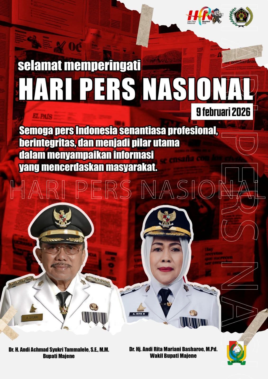 Beranda Majene Pemerintah Kabupaten Majene : Selamat Hari Pers Nasional 2026 Majene Pemerintah Kabupaten Majene : Selamat Hari Pers Nasional 2026adminFebruari 10, 2026Februari 10, 2026 MAJENE, Channelsulbar,Com Baca Juga: Bupati dan Wabup Majene,Berharap Kedisiplinan ASN Dan Tanggun Jawab Pada Tupoksi. Rekomendasi untuk kamuKadinkes Majene Geram; SPPG Mitra Tak Hadiri SosialisasiMAJENE,Channelsulbar.Com– Kegiatan sosialisasi wajib dihadiri pihak terkait sebagai proses interaksi dan edukasi untuk menanamkan nilai,… Bupati Majene Lantik 71 Pejabat Eselon II, Esalon III dan 44 Esalon IV.MAJENE,Channesulbar.Com– Pemerintah Kabupaten Majene menggelar prosesi pelantikan dan pengambilan sumpah jabatan bagi pejabat Pimpinan Tinggi…