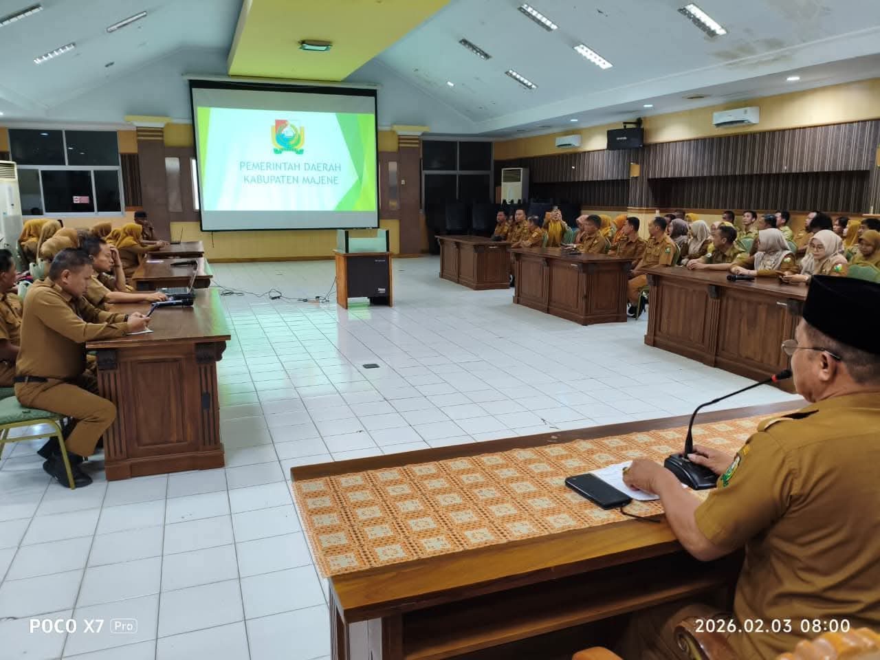 Belajar bersama juga dilakukan pegawai lingkup Pemerintah Kabupaten (Pemkab) Majene yang dipimpin Sekretaris Daerah (Sekda) Majene H. Ardiansyah didampingi Asisten Setda Majene Mustamin di ruang Pola Kantor Bupati Majene, Selasa( 03/02/2026 ).